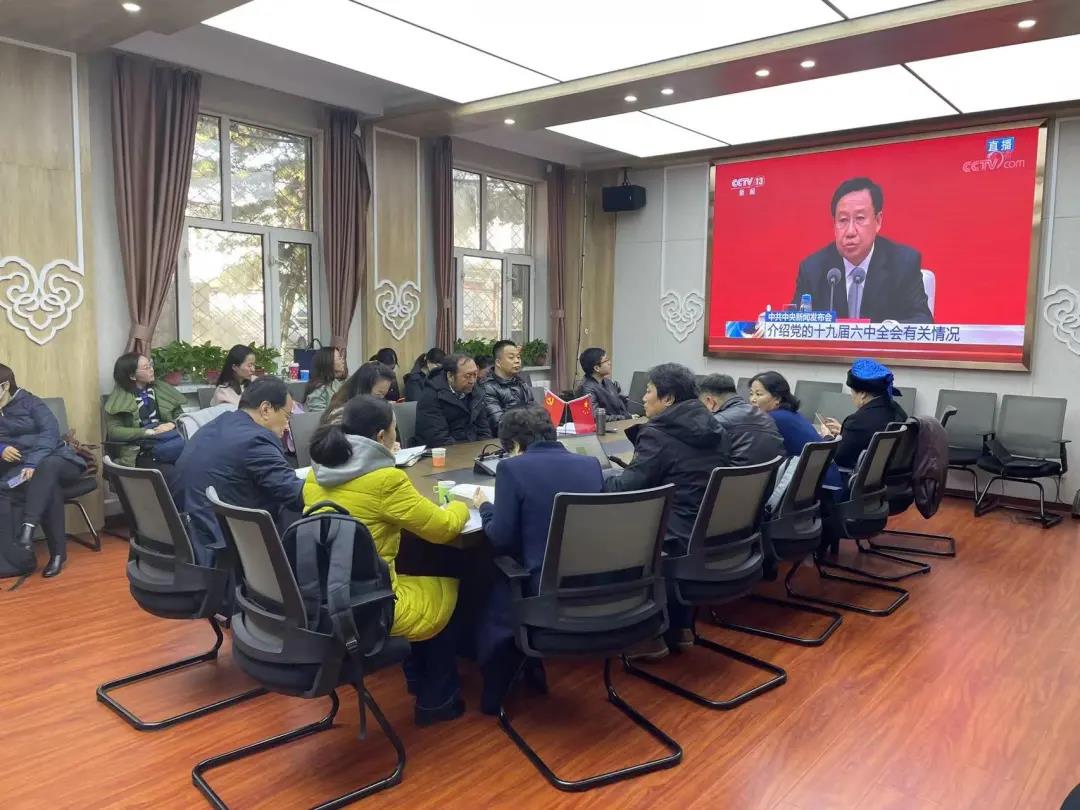 11月8日至11日,中国共产党第十九届中央委员会第六次全体会议在北京举行。全会审议通过了《中共中央关于党的百年奋斗重大成就和历史经验的决议》和《关于召开党的第二十次全国代表大会的决议》。12日上午中共中央举行新闻发布会,介绍了党的十九届六中全会精神。我院组织师生及时认真收看新闻发布会直播,学习贯彻党的十九届六中全会精神。大家纷纷表示,要更加紧密地团结在以习近平同志为核心的党中央周围,全面贯彻习近平新时代中国特色社会主义思想,始终在思想上政治上行动上同以习近平同志为核心的党中央保持高度一致,大力弘扬伟大建党精神,增强“四个意识”、坚定“四个自信”、做到“两个维护”,不断凝聚共识、汇聚力量,不断推动学院工作高质量发展,以优异成绩迎接党的二十大召开,为实现第二个百年奋斗目标、实现中华民族伟大复兴的中国梦而不懈奋斗!