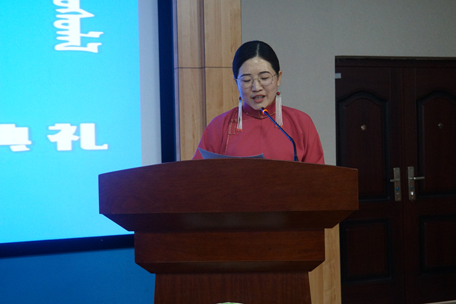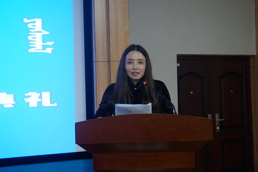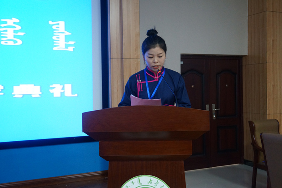 随着雄壮的国歌声仪式开始,白宝成书记代表学院致辞。教师代表、蒙古语言文学系主任元成、班主任代表赵福财、毕业生代表毕力贡格日勒分别发言。随后在校生代表西吉勒、新生本科生代表娜日迈、硕士研究生代表乌义汉、博士研究生代表乌云吉如何也依次发言。