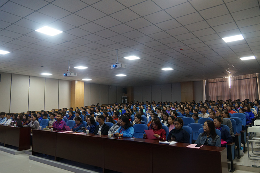 2019年9月14日上午,yl7703永利集团2019级新生开学典礼在学生事务中心一楼报告厅隆重举行。学院党总支书记白宝成、副院长聚宝、蒙古语言文学系主任元成、翻译系主任、2019级翻译班班主任乌云塔娜、综合办公室主任、2019级蒙古语言文学专业一班班主任包小、教务与科研办公室主任富荣、学生工作与就业办公室主任都日斯嘎拉图、团总支负责人、2019级蒙古语言文学专业三班班主任赵福财、2019级蒙古语言文学专业二班班主任祎丽琦以及包乌云、斯琴图、哈斯图力古尔、乌吉斯古楞、李华、乌兰、朝鲁孟其木格、玛瑙花等老师出席仪式。我院优秀毕业生、内蒙古自治区教学研究室教研员、中学高级教师毕力贡格日勒应邀出席仪式。2019级全体本科生、硕士研究生、博士研究生参加仪式。仪式由学院党总支副书记、副院长乌日其木格主持。